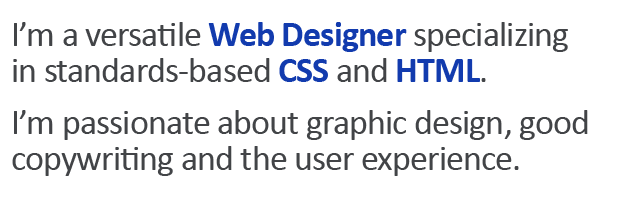 I'm a versatile Web Designer who specialize in standards-based CSS and XHTML.