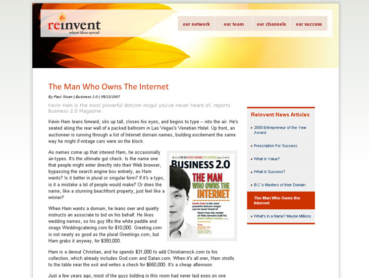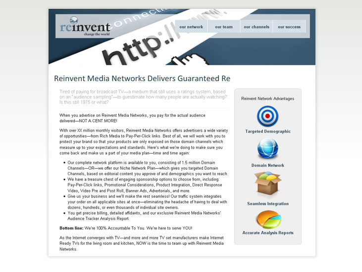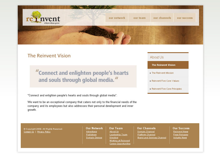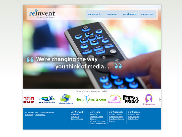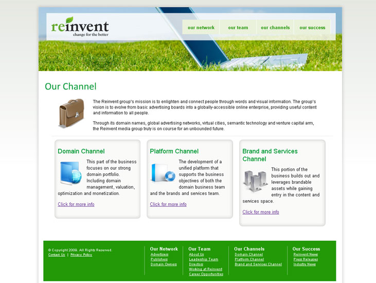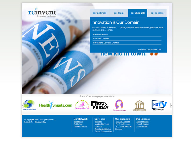 I made a compelling front page with variant background images and copy. The original design was for each tabbed menu to be a different color as well as a different symbol (logo) for each category. It was built on Drupal for content management.