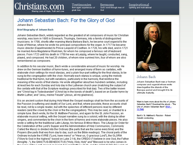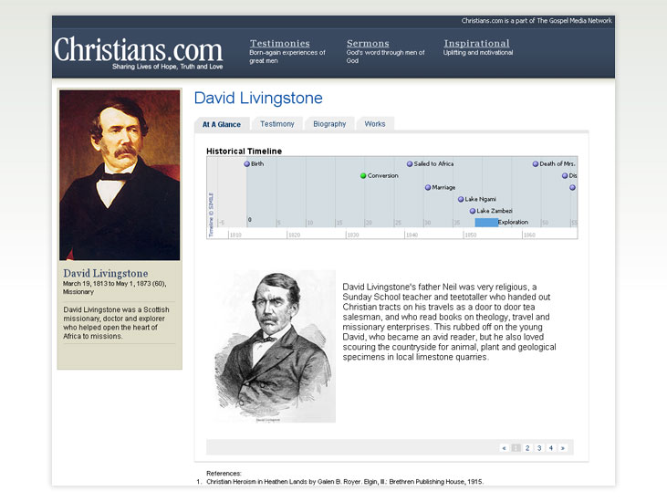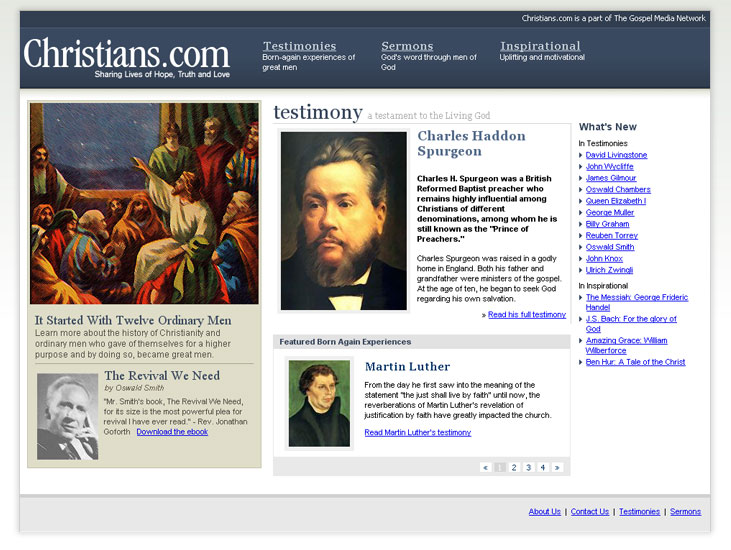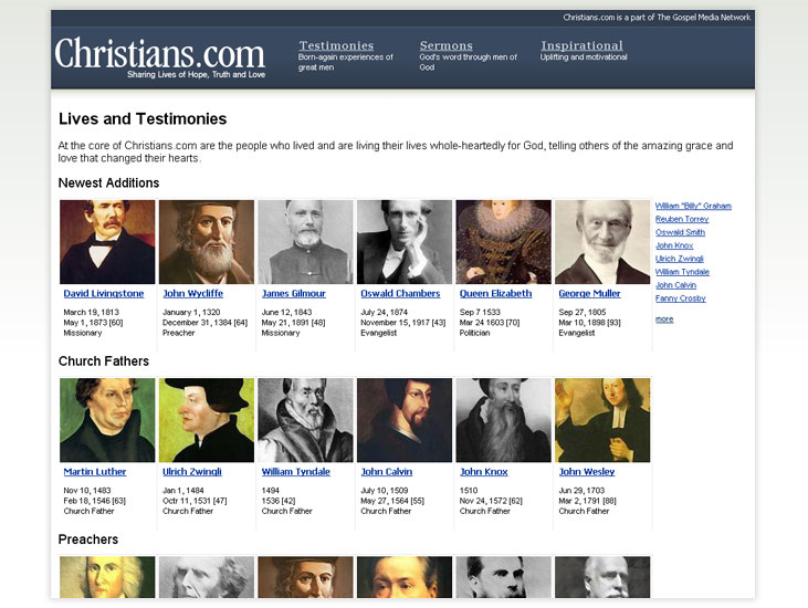 Christians.com's vision is to connect all the prominent Christians of all time and to present a brief biography and testimony of each Christian. Through timelines and connections, we will get a glimpse into how we are all part of God's family.
