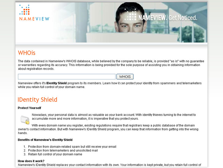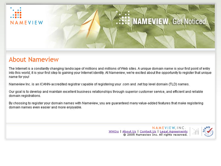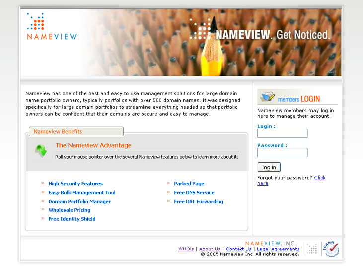 Nameview is a domain name registrar that only needed a very basic home page as well as an admin area where members may be able to manage their domain names. Due to the very exclusive nature of the company, they did not need to publish rates or include an order page.